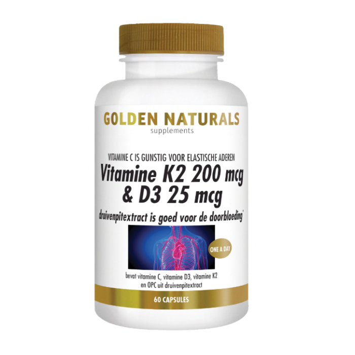 Golden Naturals Vitamine K2 200 mcg & D3 25 mcg 60 gélules