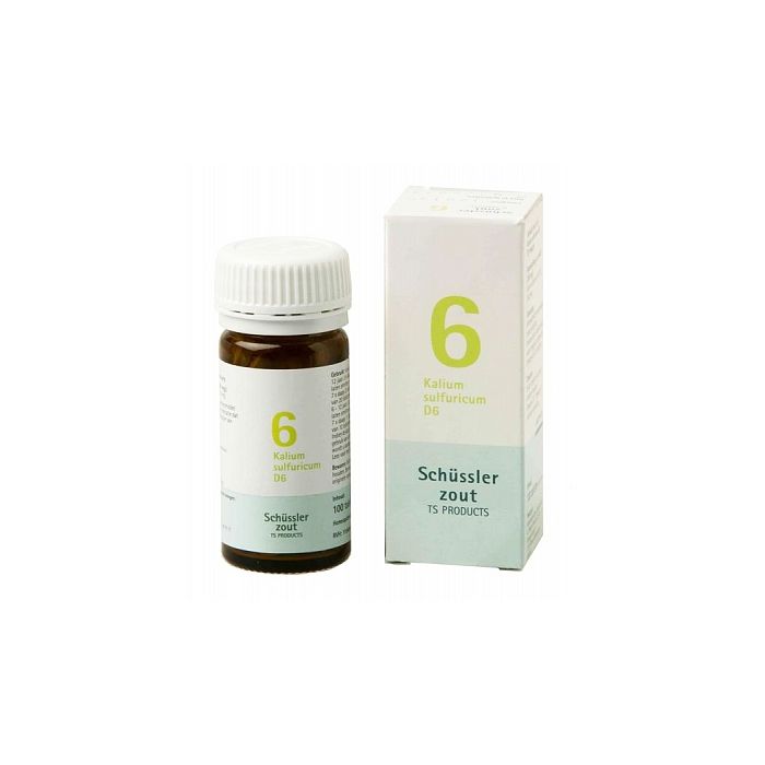 | Utilisation | Sels de Schüssler nr 6 Kalium Sulfuricum D6: 2 comprimés 3 fois par jour, laisser fondre dans la bouche et avaler. Maximum de 40 comprimés par jour. Ne pas dépasser la dose maximale. Sécher et conserver à température ambiante, hors de portée des enfants. |